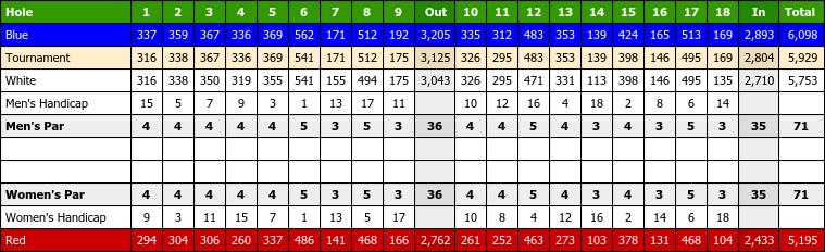 Click on a hole number to compare JPs score to the field. The course rating is 695 and it has a slope rating of 116.
